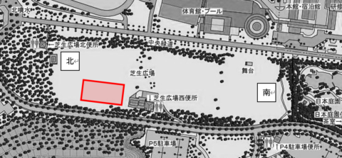 芝生広場北面エリアの一部をカラーコーンで囲いイベント専用エリアとさせていただきます。